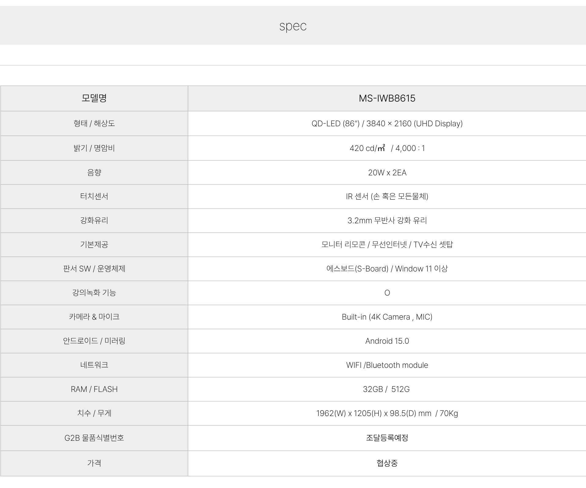 전자칠판 MS-IWB8615